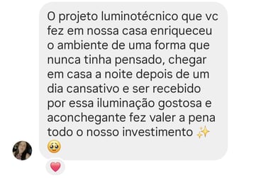 Somos apaixonados por transformar espaços com iluminação que emociona, valoriza e cria histórias. Aqui, cada projeto é pensado com cuidado e técnica para refletir quem você é e o que mais importa para você.