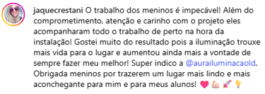 Somos apaixonados por transformar espaços com iluminação que emociona, valoriza e cria histórias. Aqui, cada projeto é pensado com cuidado e técnica para refletir quem você é e o que mais importa para você.