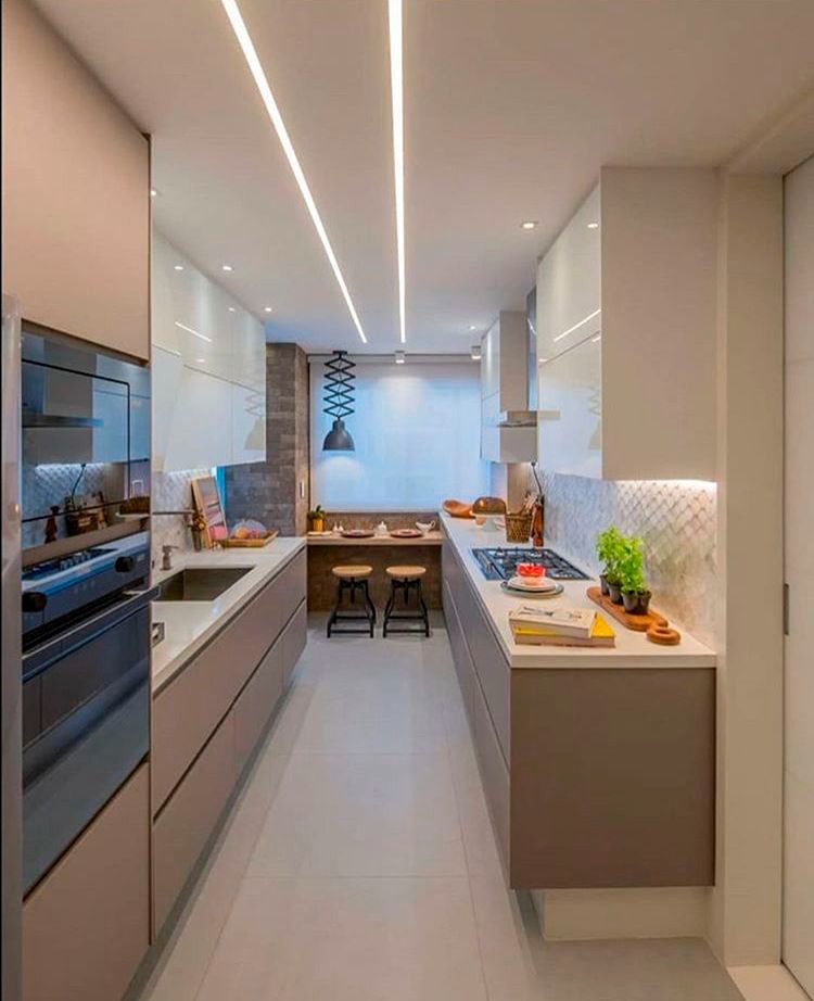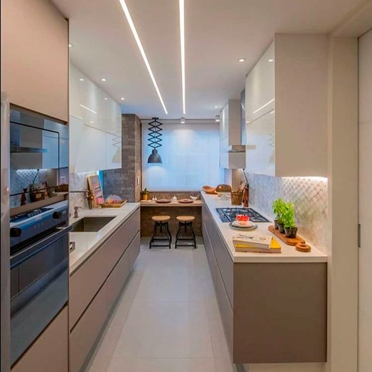Spots e trilhos embutidos ou perfil de LED ajudam a otimizar a altura do ambiente e trazem um design mais clean, ideal para apartamentos compactos.